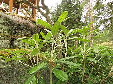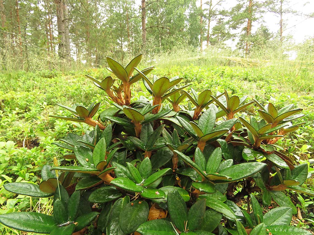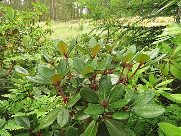 New foliage growth of Rhododendron species and hybrids in Rhodogarden on 29th of June, 2020 Alppiruusulajien ja lajikkeiden uutta kasvua Rhodogardenissa 29. kesäkuuta 2020