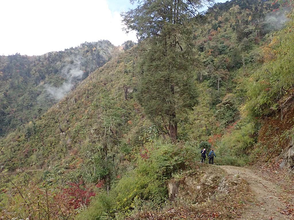 Early morning at the guest house in Zhiziluo villageStarting point of the daily trek up to the mountain at a farm houseGeese at the farm houseA view from the farm house up to the mountainA view from the farm house up to the mountainMountain road up to the Biluo ShanRhododendron sinogrande , 2820 mKristian and Rhododendron sinogrande , 2870 mKristian and Rhododendron sinogrande , 2870 mView from the mountain roadView from the mountain roadView from the mountain road, 3000 mView from the mountain roadView from the mountain roadThe mountain roadEgil V. and Hans S. trekking up on the mountain roadA streamStill getting upView from the mountain roadHans E. trekking upView from the mountain roadView from the mountain roadView from the mountain roadView from the mountain roadView from the mountain roadRhododendron sinogrande and facetum , 3000 mCows walked free along the mountain roadTrekking back downThe road goes on mountain slopes through landslide areasCatholic church in Zhiziluo villageGetting our luggage from the guest house in Zhiziluo village before we continued to FugongA view from the guest house in Zhiziluo villageRoad along the Salween river. A stop caused by road work.The over 200 km long road from Liuku to Gongshan was under construction. Our next stop was in Fugong for the night.