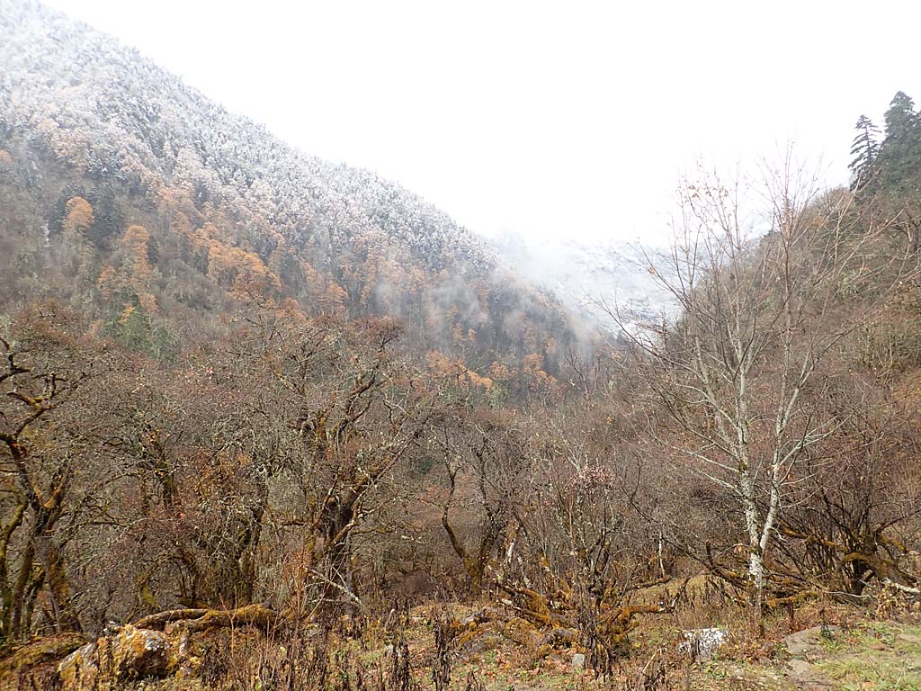Because of too much snow in the Nanjieluo mountains we decided to have a short walk at lower altitudes and drive back to Badi in the afternoon.Snow was on high altitudes but down in the valley at 3100 m the mountain road was clear.Flourishing vegetation and a lot of lichen on the treesA mountain stream down the slopeSten N. exploring on the slopeNanjeluo mountain road, 3100 mMatti H., Hans E. and Hans S.Hans S., Sten N. and Egil V. botanizing on the slopeA hut beside the mountain roadAnother hut and a shellter for pigs?View from the mountain roadDennis and Tom getting backDriving back on the narrow and winding mountain road.Installing antennas on the mountain slopesOn the narrow mountain road.The brdges over the Mekong riverNarrow bridge over MekongWorkshop for machines in BadiBy chance two of us came in Badi to the beautiful home of one of our drivers. The father gave us delicious fruits from the tree.