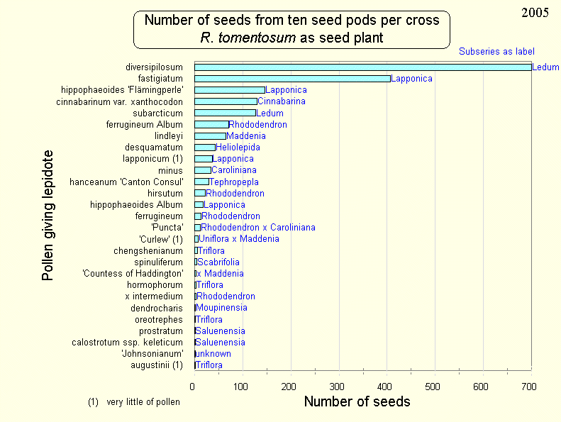 Pollinations in 2006 using Rhododendron tomentosum as Seed Plant