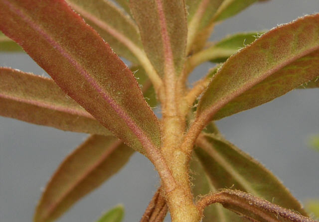Figure 14. R. tomentosum x 'Flämingperle'. The underside of the leaves is covered densely with scales, without indumentum. |