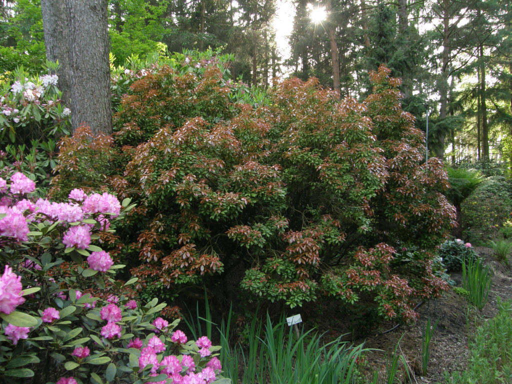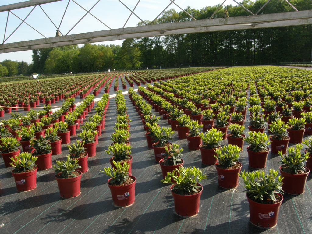 Bruns Pflanzen, Gristede Hartwig Schepker and Jan-Dieter Bruns Start of the tour on straw bale wagons Denis Hughes from New Zealand, pot fields at Bruns Pots in straight rows Marinus Manders, Mitch Gorzkowski, Don Hyatt and Jan-Dieter Bruns Acers Forest garden 'Furnivall's Daughter', seedling from selfed 'Mrs. Furnival', Waterer 'Europa 93', 'Kluis Sensation' x insigne, R. Seleger (c 1968) Pieris japonica 'Mountain Fire' ? 'Golden Gate', dichroanthum ssp. scyphocalyx hybrid, R: unknown (pre 1975) 'Olin O. Dobbs', 'Mars' x 'Purple Splendour', O.O. Dobbs (1955) 'Percy Wiseman', 'yaksuhimanum x 'Fabia Tangerine' selfed, Waterer (Bagshot) Rhodowater was served at dinner