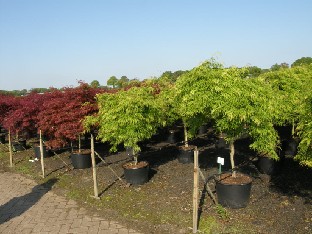 Diderk Heinje and son Sebastian Heinje Heinje's pot fields Acers Roses Rhododendrons Magnolia 'Satisfaction' Magnolias etc. Pots in greenhouse Diderk Heinje, Günter Brüninghaus, Jacob and Maria Liebe Pot field Yakus Watering system and pot field Long rows of pots Peat field close to Heinje A sample of peat