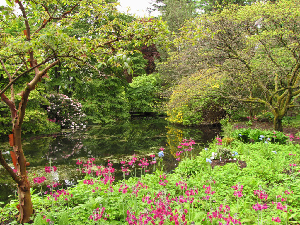 Map of the garden Redwood avenue, Sequoiadendron giganteum Magnolia wilsonii Araucaria araucana Rhododendron falconeri ssp. falconeri Rhododendron falconeri ssp. falconeri Rhododendron arizelum Rhododendron kesangiae ssp. kesangiae Rhododendron prinophyllum. The label on the plant says it is R. canescens but this does not match the description of the species. (1984.8021 C) Davidia involucrata Trilliums and Rheum Rhododendron augustinii ssp. hardyi