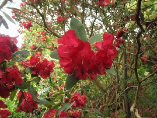 First view to the garden Azaleas Enkianthus sp. Rhododendron tricanthum Rhododendron tricanthum Rhododendron tricanthum Rhododendron alutaceum var. iodes Exbury form Pollinating Rhododendron rex ssp. fictolacteum Looking under the leaves Rhododendron thomsonii var. candelabrum Rhododendron thomsonii var. candelabrum Rhododendron bureavii from Yunnan Rhododendron bureaviodes from Sichuan. Oddly long and not bent petiole for a bureavioides. Rosemary Legrand among colorful azaleas and lepidotes Rosemary Legrand and Kristian Theqvist Farewell to the beautiful garden