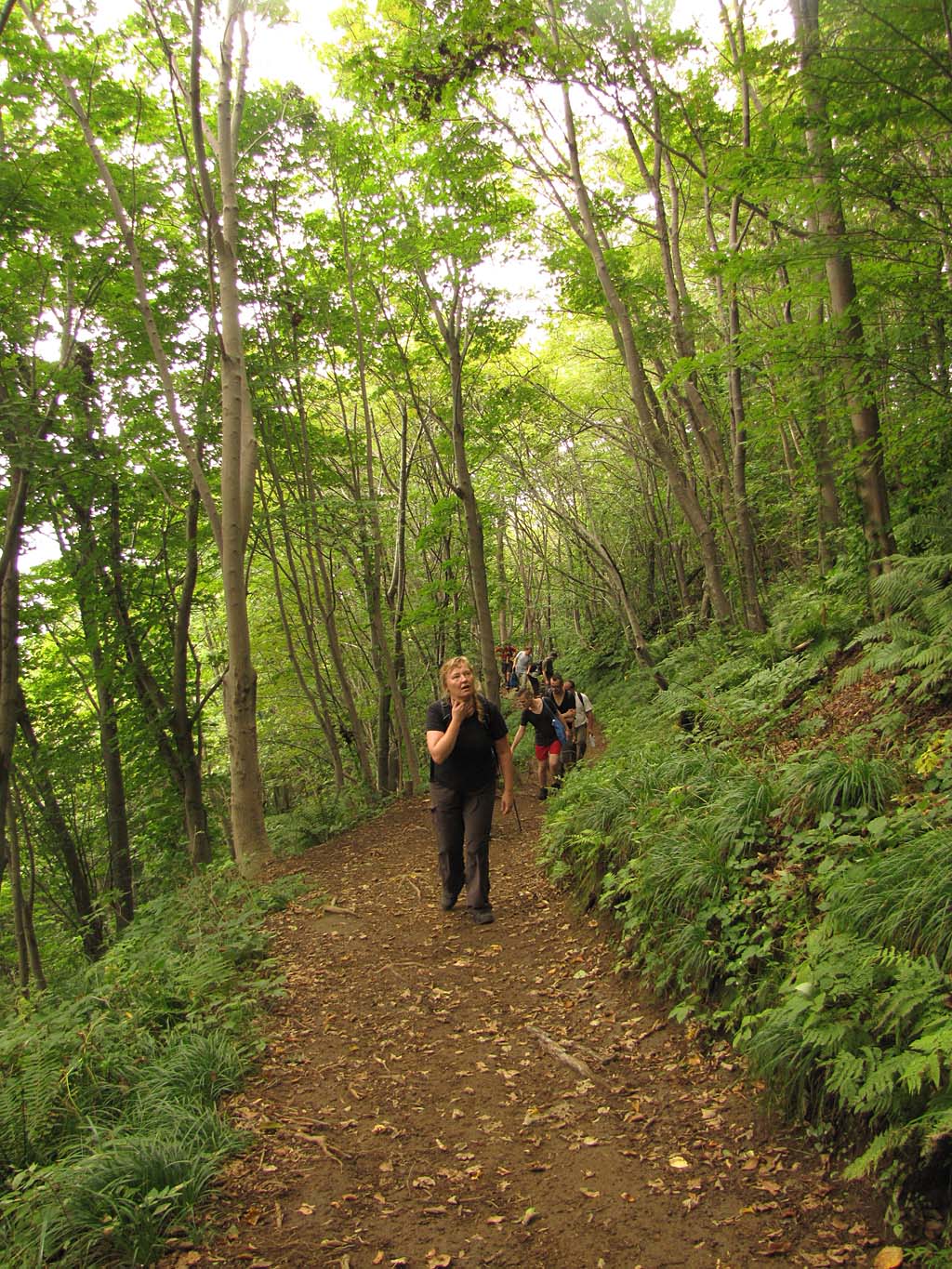 The local road on Ullung View towards the Daea Ulleung Resort Hotel on the coast of Ullung Do not pick ornamental fruits! Planted Sorbus ulleungensis (Sorbus commixta Ullung form). Farmer's private ropeway on a steep hill Ampelopsis brevipedunculata, Ullung 180 m Aralia cordata, Ullung 200 m Codonopsis lanceolata grown on the fields for the its edible roots, Ullung 240 m View towards the Dodong village Start of the trail to the Seonginbong Peak, Ullung 280 m Looking at the trail map The trail map up to the Seonginbong Peak and on the other side down to the Nari-dong village One last view towards the Dodong village, Ullung 280 m Trail sign Acer okamotoanum forest, Ullung 380 m Acer okamotoanum, Ullung 380 m Trekking up on the trail, Ullung 400 m Trekking on the trail, Ullung 500 m Hydrangea anomala ssp. petiolaris, Ullung 500 m Hydrangea anomala ssp. petiolaris, Ullung 500 m Ullung 500 m