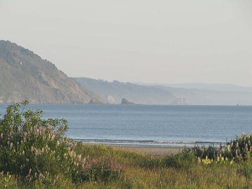 Crescent City, California. View from motel window. Crescent City, Kalifornia. Näkymä motellin ikkunasta.Sea Lions at sunset. Crescent City, California. Merileijonat auringolaskun aikaan. Crescent City, California.